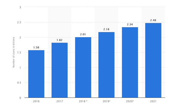 The above chart shows that by 2021, we are going to have a generation that uses messaging app tremendously. This would be quite enough to pinnacle social messaging app. So, marketing via a social messaging app is also going to be much more beneficial.